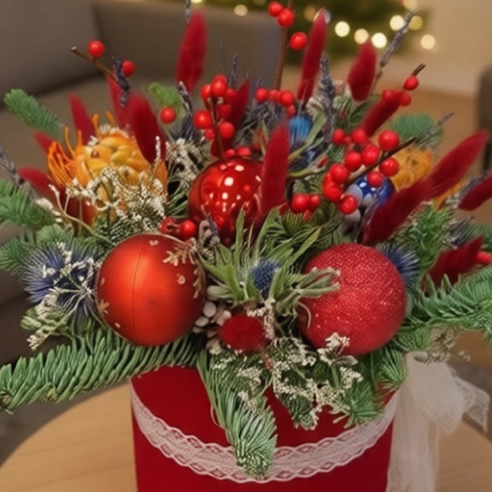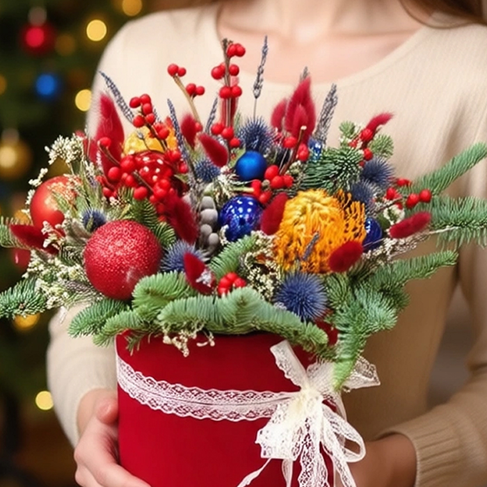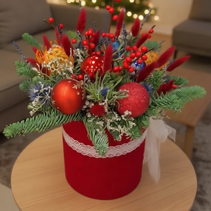 Купить Новогоднюю композиция в коробке в Москве по низкой цене