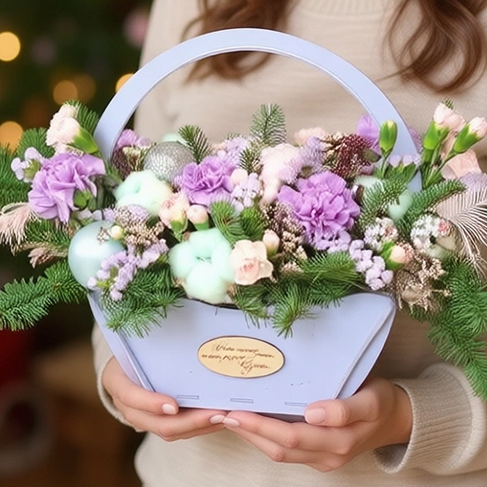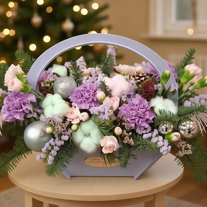 Купить Новогоднюю композиция в корзинке в Москве по низкой цене