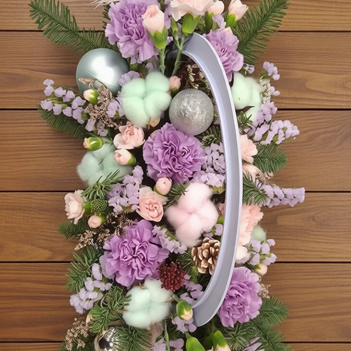 Нобилис (ёлка), Гвоздика — 15 шт., Статица — 5 шт., Оазис — 1 шт., Корзина плетённая