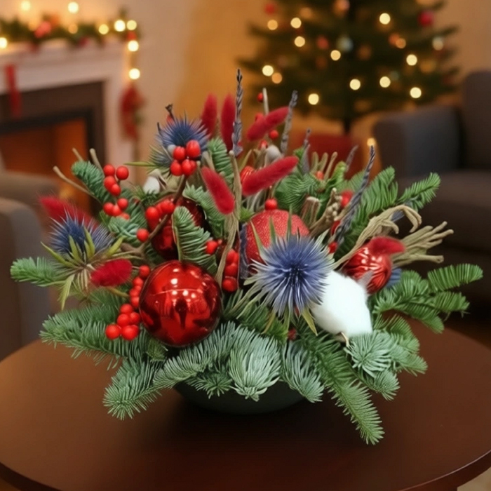 Купить Композицию на Новый год с лавандой в кашпо в Москве по низкой цене