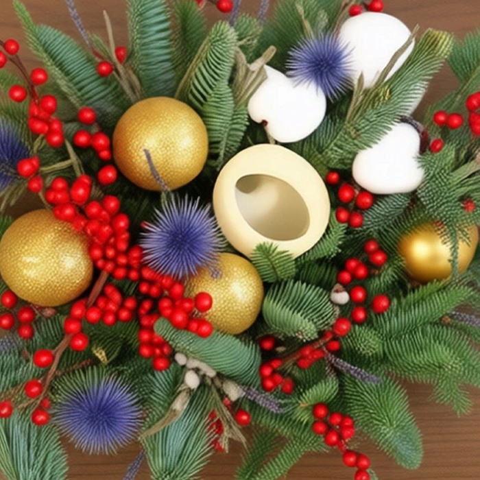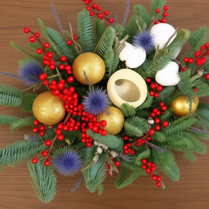Нобилис (ёлка) — 0,300, Илекс — 2 шт., Эрингиум — 2 шт., Бруния — 3 шт., Лаванда — 1 шт., Оазис — 2 шт., Кашпо «Грация» 4,5 л.